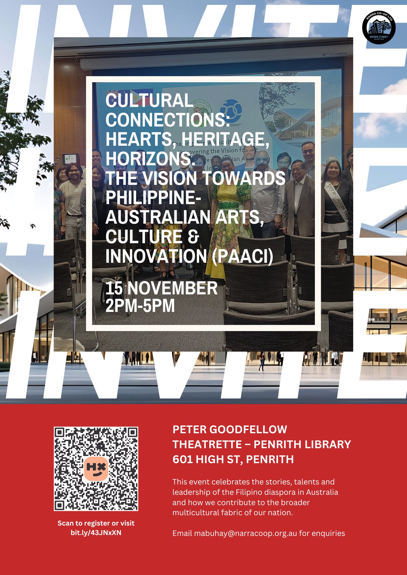 🎟️What: Join us for the next session of Cultural Connections: Hearts, Heritage, Horizons – The Vision Towards Philippine-Australian Arts, Culture & Innovation (PAACI).